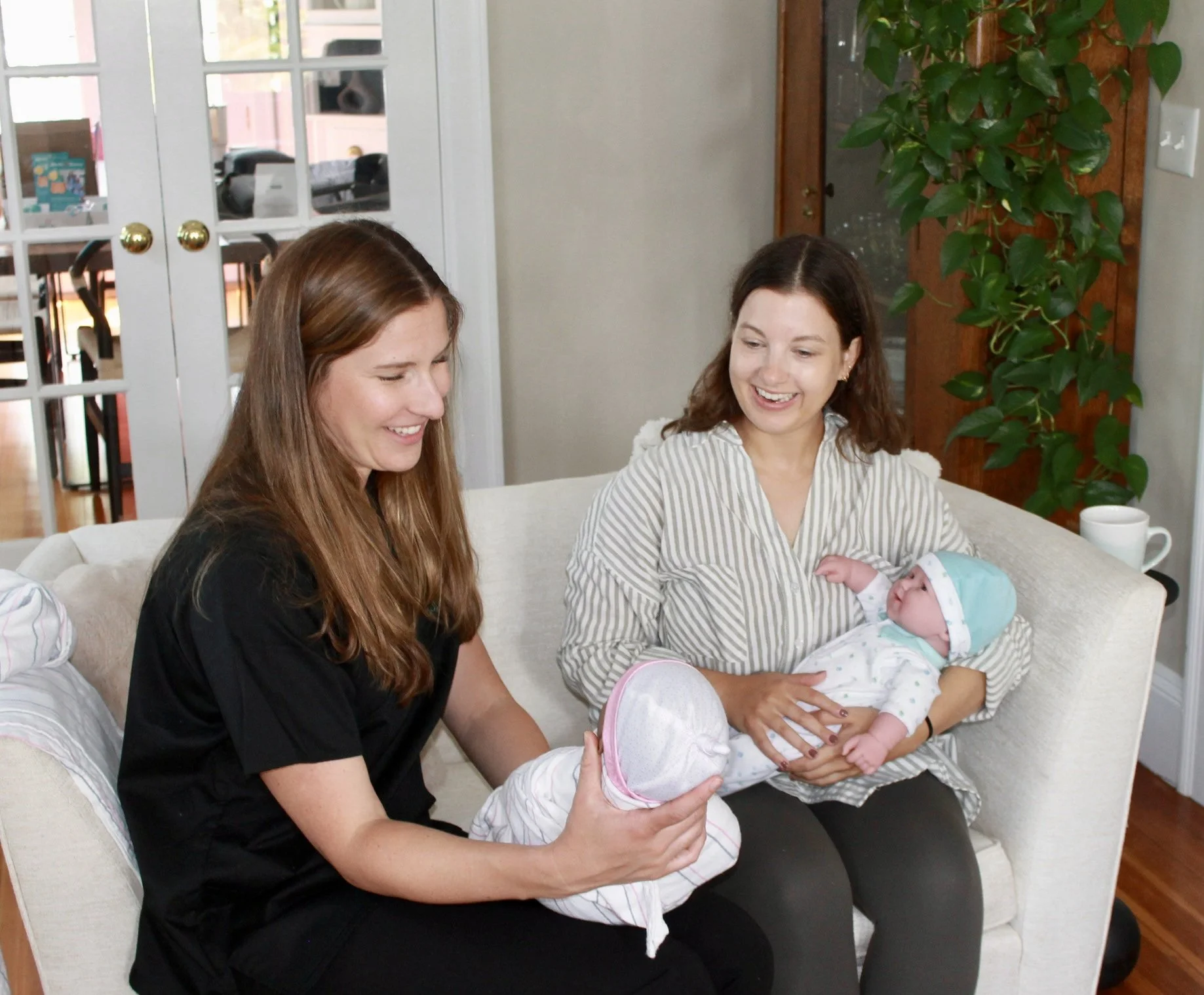 Postpartum: Our continuous support follows you home! As certified lactation consultants and perinatal mental health certified nurses, we support the full picture of recovery- the physical and emotional transition into caring for a newborn. Enjoy a welcome home visit within your first few days home that includes hands on guidance on newborn care such as first bath, swaddling, soothing techniques, feeding and lactation support, and a check in on your recovery. With the option to add additional postpartum visits to your plan, enjoy the kind of steady guidance that transforms those early days from survival mode into a genuine foundation.